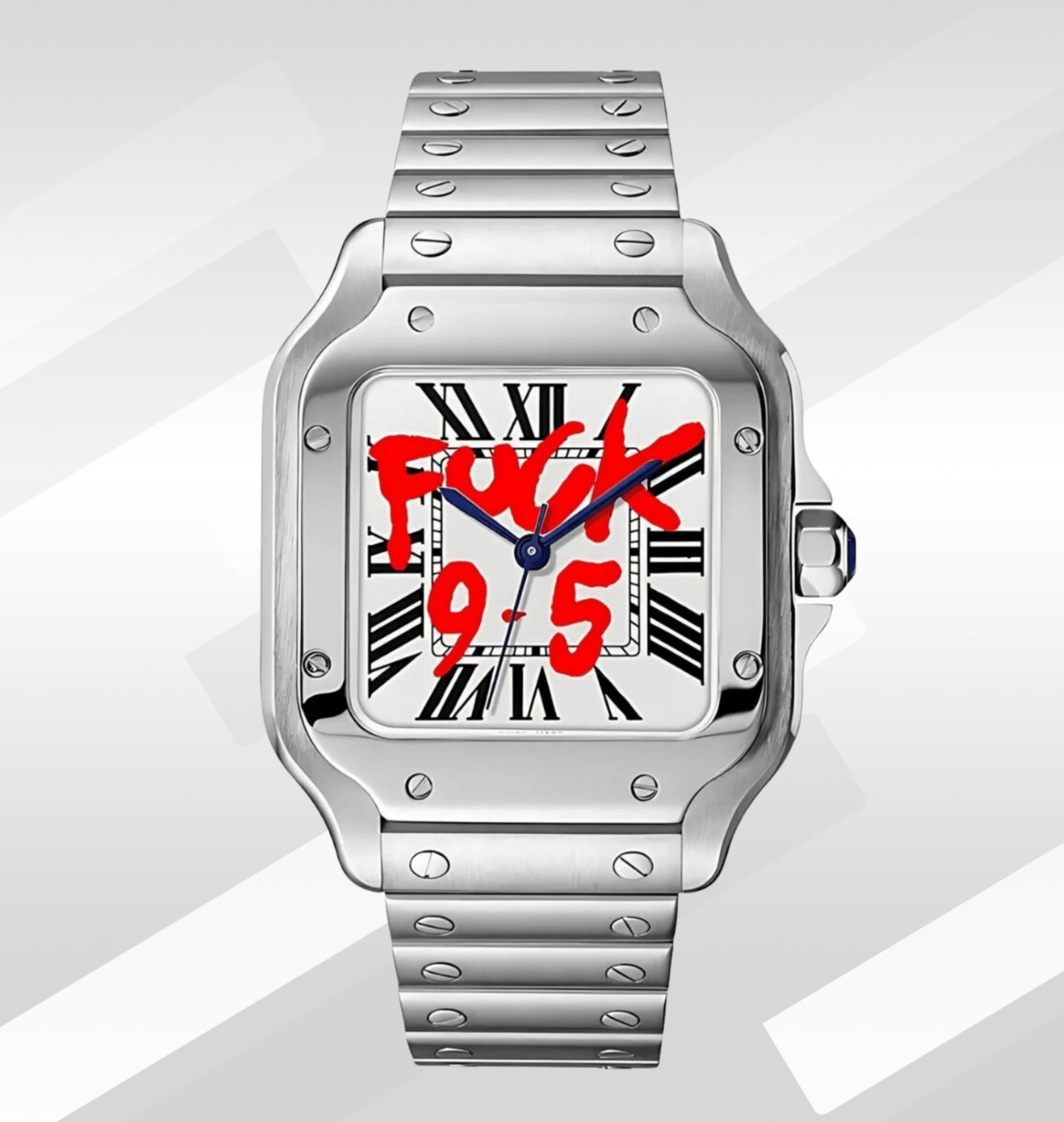 Introducing the Seiko Mod Santos "9 - 5" Edition, a custom Seiko NH35 Automatic Watch inspired by the iconic “Santos” design. This piece combines elegance and precision, featuring a White Roman "9 - 5" Edition aftermarket dial encased in a 38mm stainless steel frame. The transparent back piece allows a glimpse into the intricate automatic movement, making it a standout choice for watch aficionados.