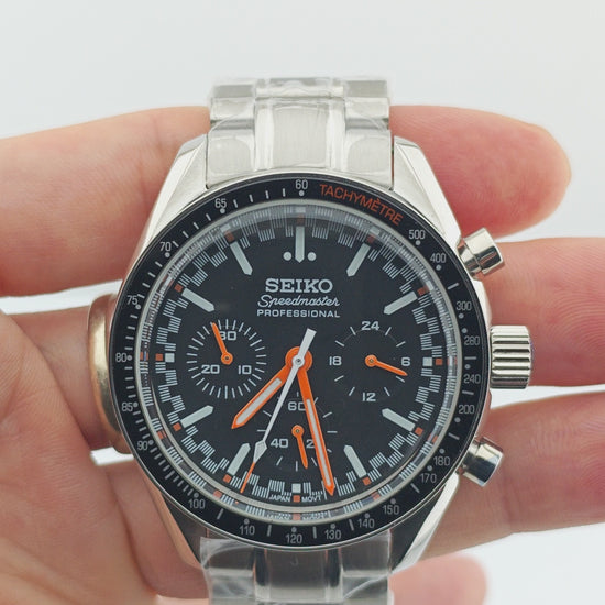SeikoMod Speedmaster Moonwatch Black - Orange