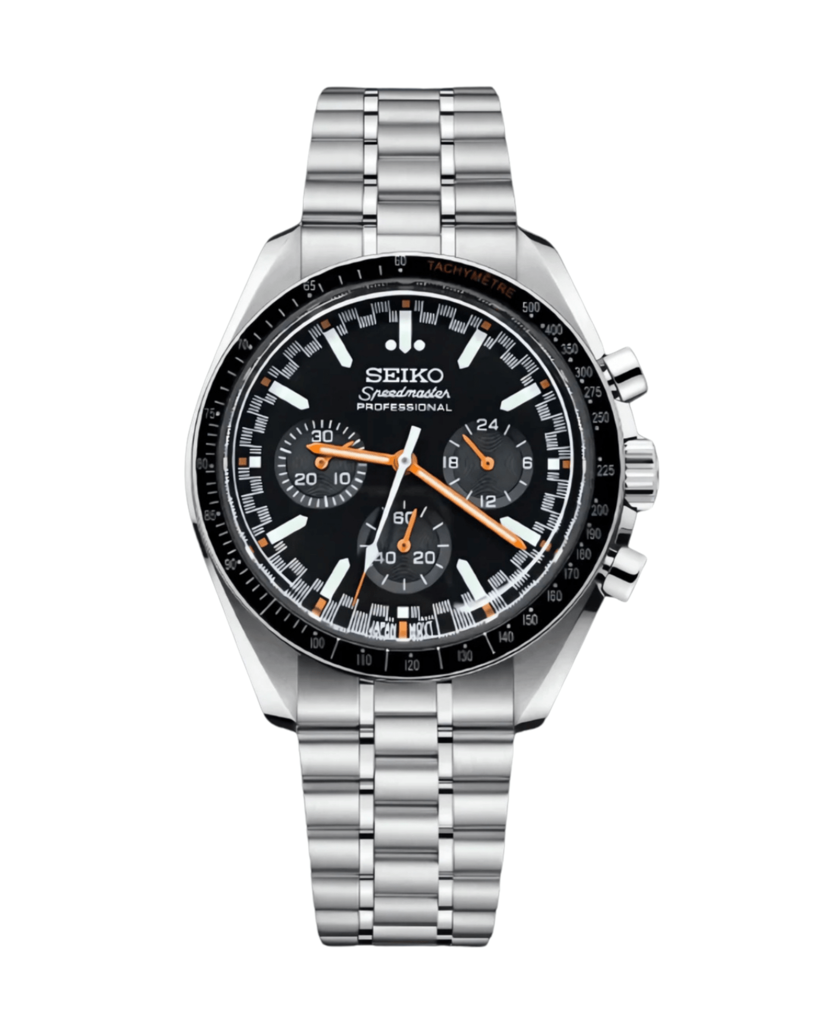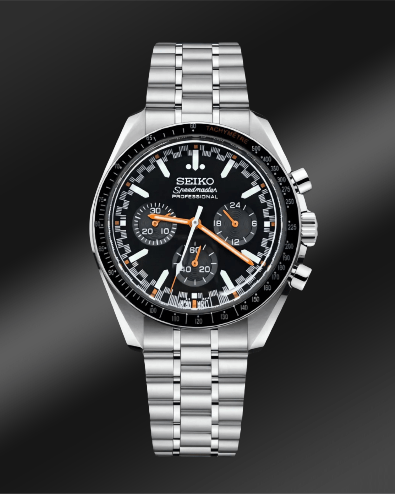 Elevate your style with the Seiko Mod Speedmaster Moonwatch Black - Orange, a custom VK63 Mechanical Quartz Watch, inspired by the iconic “Speedmaster” design. This unique timepiece features a Black - Orange dial, encased in a 42mm stainless steel frame, offering a blend of elegance and precision for watch enthusiasts.